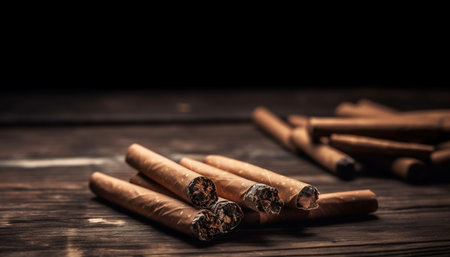 Some handmade cigarette isolated studio shot wood background product presentation.