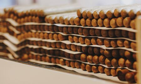 background of Cuban cigars. close-up detail of cigars. background on the topic of cigars