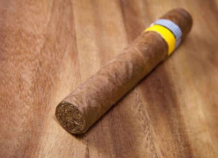 rolled cigar from a tobacco leaf on a wooden background, Small depth of sharpness