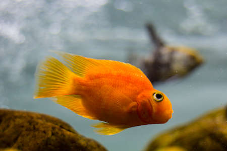 tropical fish in the aquarium fish red parrot swim