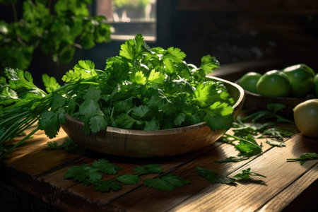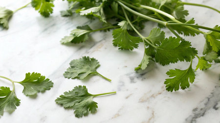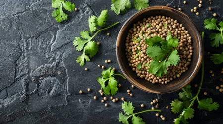 Coriander leaves and seeds are used to add freshness and a characteristic flavor to dishes from various cultures generative ai
