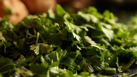 Aromatic Bliss: Closeup of Chopped Cilantro, Perfect Herb Addition to Your Culinary Creations. Generative AI