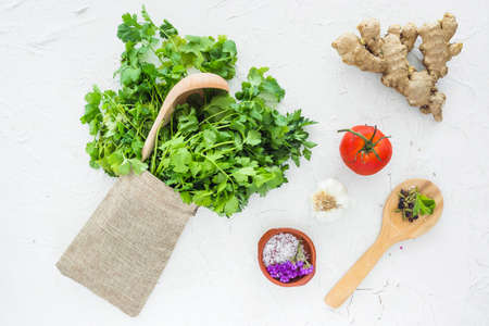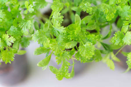 Coriander leaves on a light background. Healthy food concept.