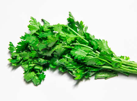 Fresh coriander on white background.