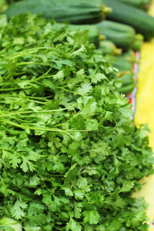 fresh vegetables - coriander in the market.