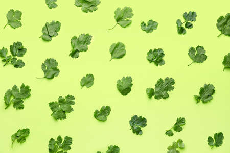 Fresh cilantro on color background