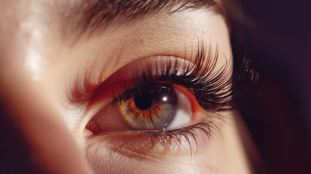 Dramatic shot of a beautiful woman eyes looking at camera long artificial lashes