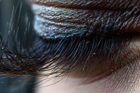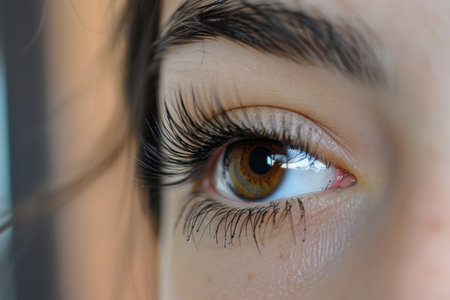 An up-close view of a persons eye, showcasing their long and luscious eyelashes, Close-up of an eyelash’s texture, AI Generated