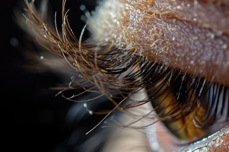A detailed view of a persons eye with strands of long hair around it, Close-up of an eyelash’s texture, AI Generated