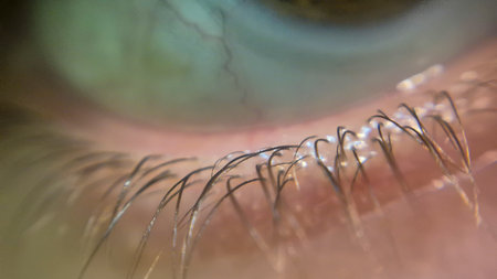 Close-up of an eye showing detailed eyelashes and the cornea emphasizing the intricate structures of human anatomy. Perfect for educational and health-related content.