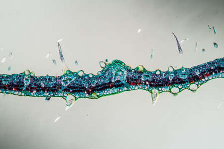 Cross-section leaf Plant of under the microscope for classroom education.