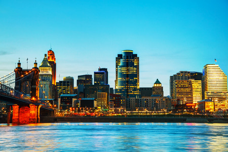 Cincinnati Ohio skyline at twilight
