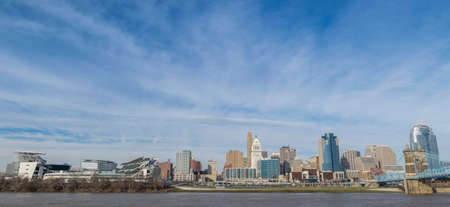 A skyline shot of Cincinnati, Ohio on a sunny day in December