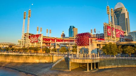 Aerial of Cincinnati Great American Ball Park at Golden Hour