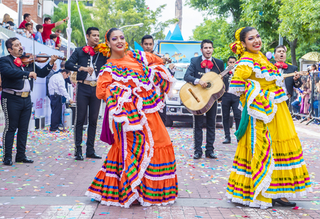 GUADALAJARA , MEXICO - AUG 28 : Participants in a parde during the 23rd International Mariachi & Charros festival in Guadalajara Mexico on August 28 , 2016.