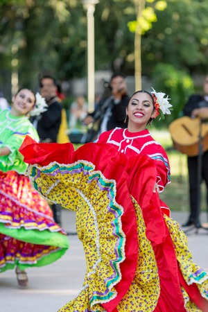 TIMISOARA, ROMANIA - JULY 8, 2018: Mexican dancers in traditional costume present at the international folk festival