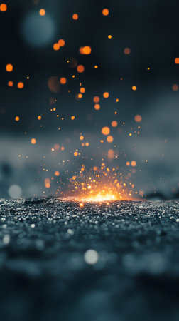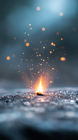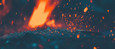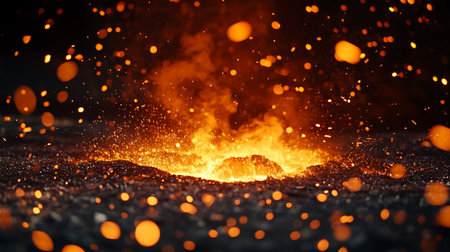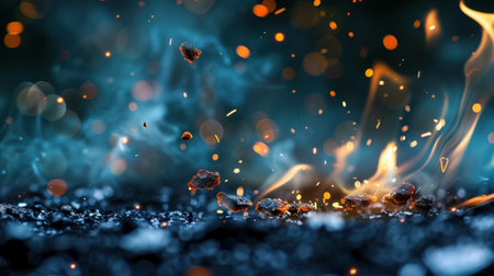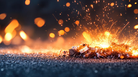 Captivating image showcasing vibrant flames and dancing sparks in a dark setting, creating a mesmerizing atmosphere with glowing elements and smoke.