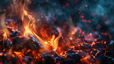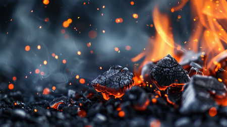 Captivating flames and glowing embers on a bed of hot coals with ample copy space available