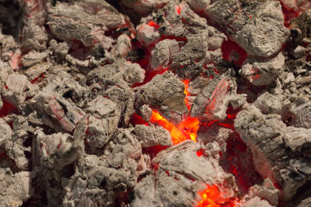 Burning charcoal close-up. Abstract background of burning charcoal.