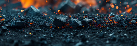 Close up of fire and embers on hot coals for grilling or barbecue banner design background