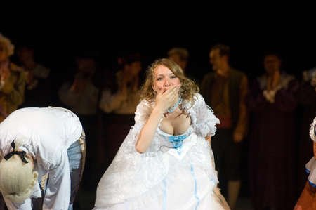 DNEPROPETROVSK, UKRAINE – JUNE 25: Members of the Dnepropetrovsk State Opera and Ballet Theatre perform The Barber of Seville on June 25, 2011 in Dnepropetrovsk, Ukraine