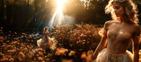 A beautiful fashion model with long blonde hair and elegance generated by artificial intelligence