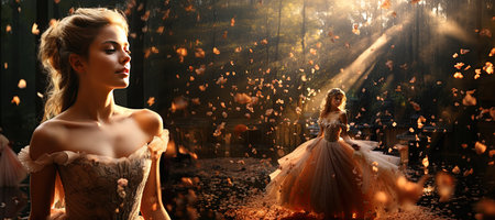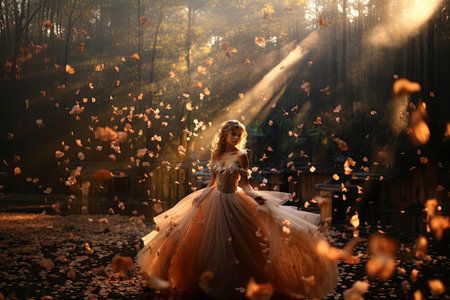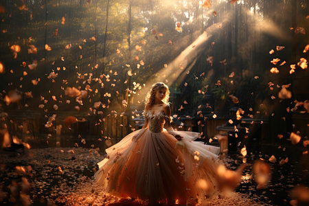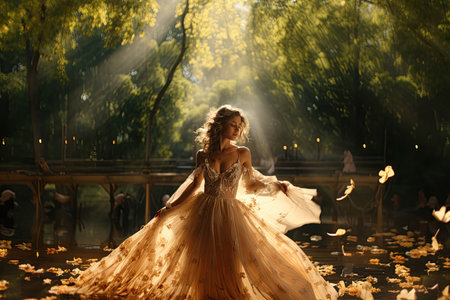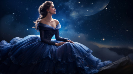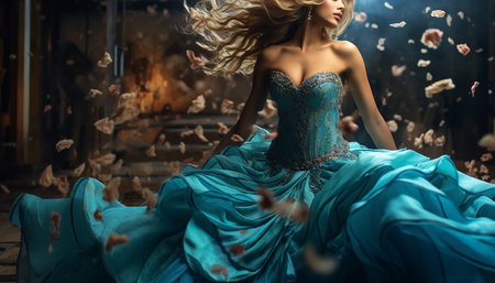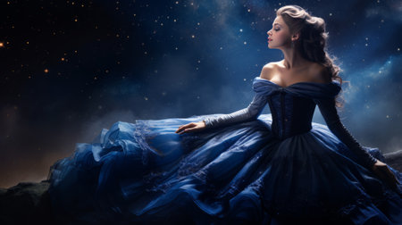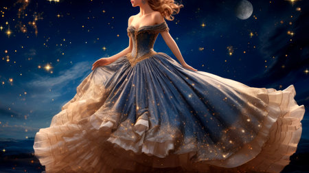 Lady in fantastic magic dress in a dazzling ball.