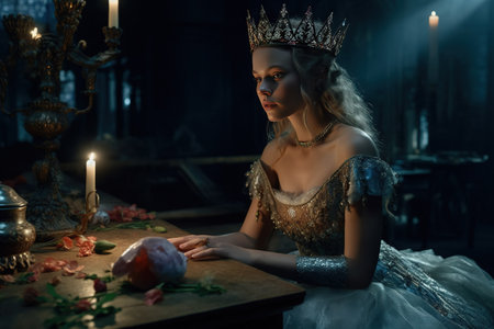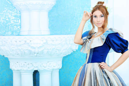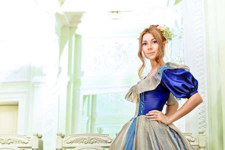Beautiful young Queen with a crown on his head and in a beautiful dress.
