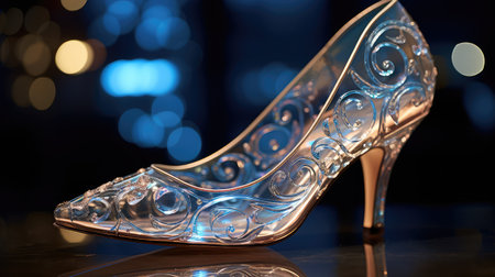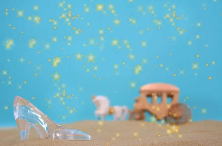 Glass Slipper on Beach With Carriage in Background