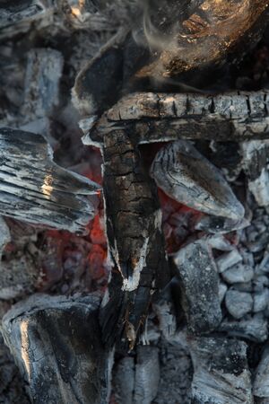 Smouldering coals. Ashes in the barbecue