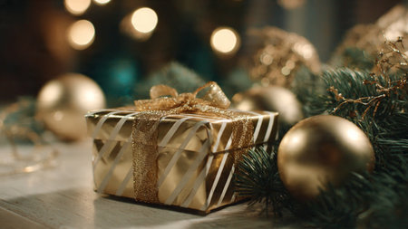 Embrace the spirit of Christmas with beautifully wrapped gifts, vibrant ribbons, shiny ornaments, and decorations that create a warm, cheerful holiday atmosphere