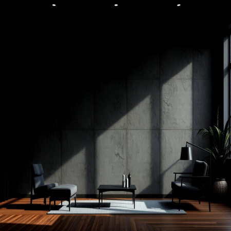 Empty elegant dark room at night with copy space, Blank wall and copy space in empty elegant dark room at night AI generated