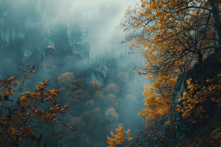 Majestic Mountain Peaks Enveloped in Misty Autumn Forest Scenic Winter Landscape Photography fog fir