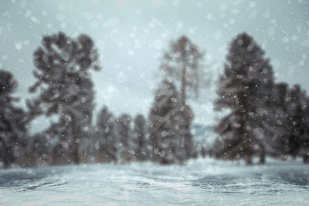 winter background, blured forest with snow