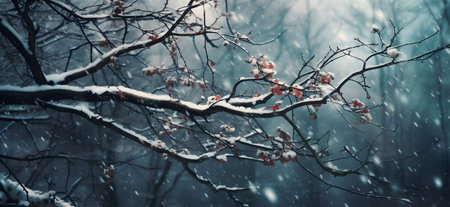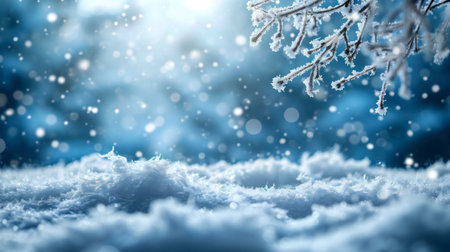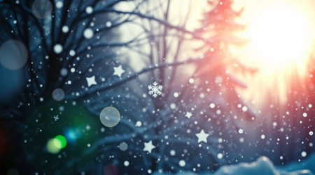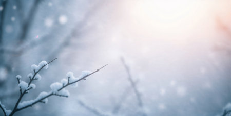 Beautiful Winter Abstract Bokeh with Snowy Tree Branches and Soft Blurred Landscape Background