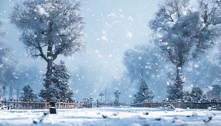 Beautiful winter landscape with snowfall in the park.