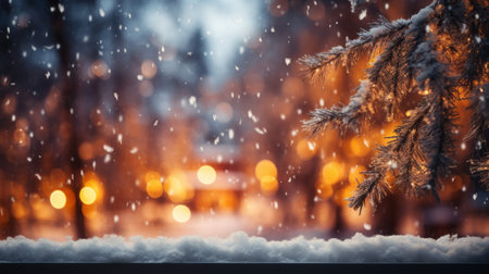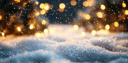 Winter night bokeh scene with soft golden lights, ideal for festive holiday celebrations.