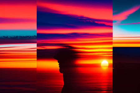 Generative AI : Different times of day dawn and sunset day and night Concept of continuous flow of time and unity and struggle of opposites Elements of this image furnished by NASA
