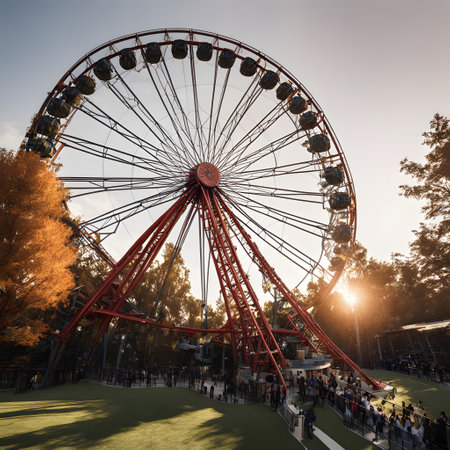Spring festival fun ferris wheel at cherry blossom park amusement vibrant atmosphere scenic view
