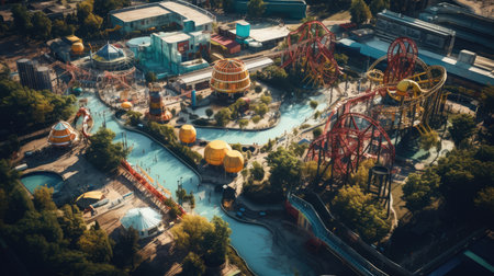 A roller coaster zooms through twists and turns passengers screaming with excitement created with Generative AI