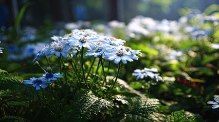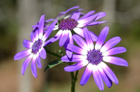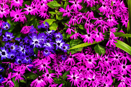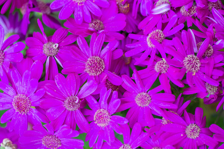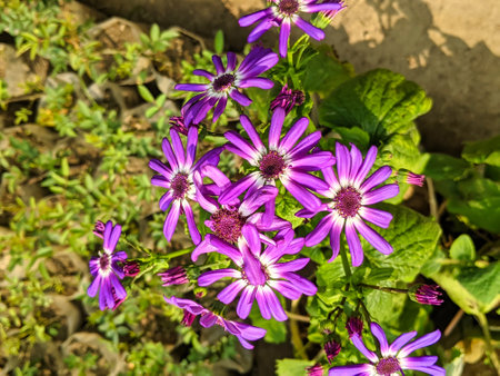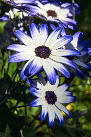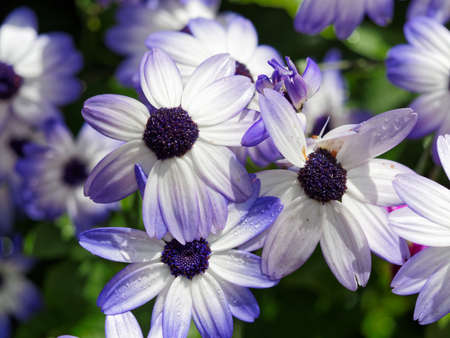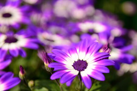Swan River daisy or Compositae also known as Dainty blue flowers, Potted blue Pericallis, in the spring garden