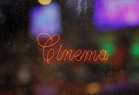 A glowing cinema neon sign radiates vibrant energy enhancing a sleek wall for a dynamic cinematic atmosphere