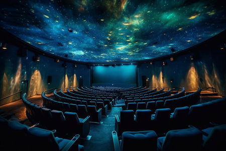 Planetarium inside. Study of space and astrology. Planetarium Day.