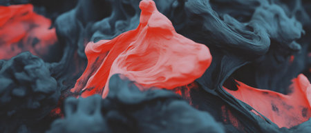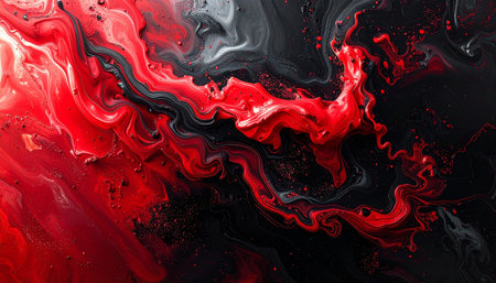 Abstract liquid ink texture, bold swirling patterns of black and red, dramatic and dynamic