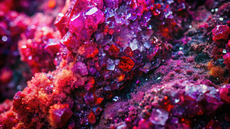 Vibrant pink and purple crystals form a dazzling cluster.