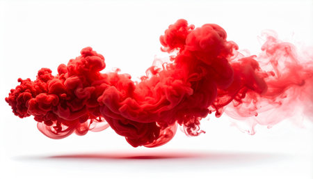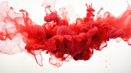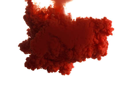 Cloud of red color ink in water isolated on white. Abstract design and texture.