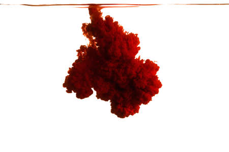Red ink drop in water on white background. Watercolor paint splash abstract.