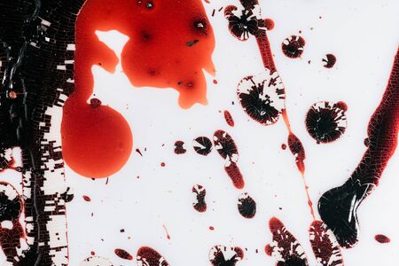 Oil droplet. Liquid background. Blur white red maroon color ink in marble water round texture flowing on creative art abstraction.