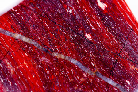 Macro mineral stone jasper zebra iron on a white background close up