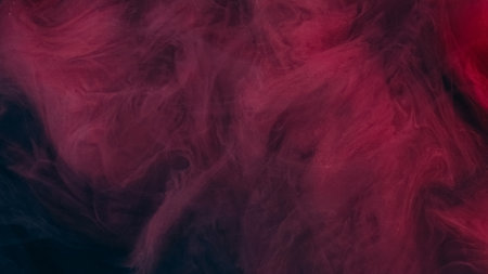 Smoke cloud. Ink water splash. Defocused pink red black color glitter particles texture haze wave on dark abstract art background.